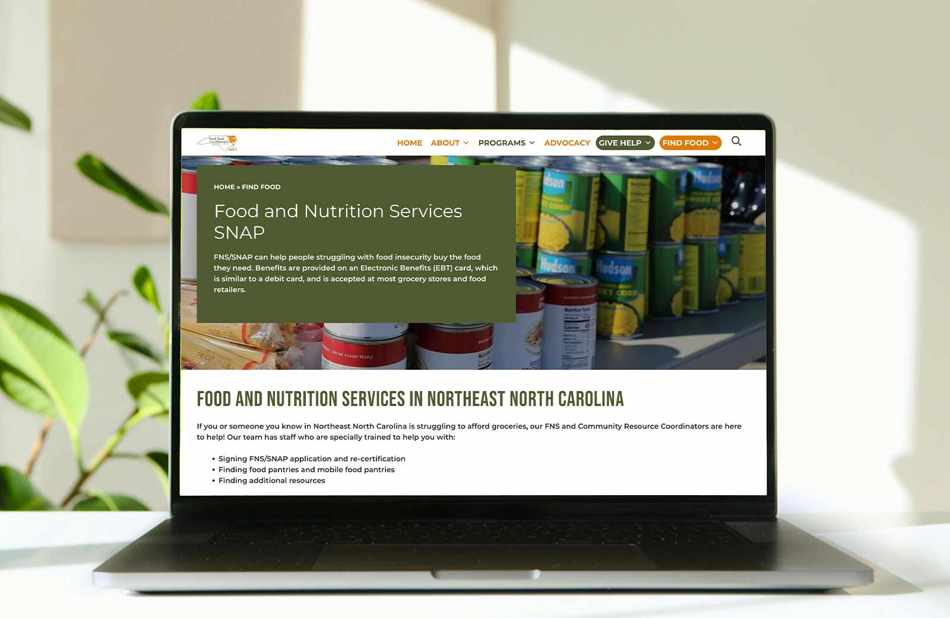 Food Bank of the Albemarle serves as a critical resource for food security across northeastern North Carolina. The organization needed a modern, accessible website that could better support their mission, connect with donors and volunteers, and serve the broader community.