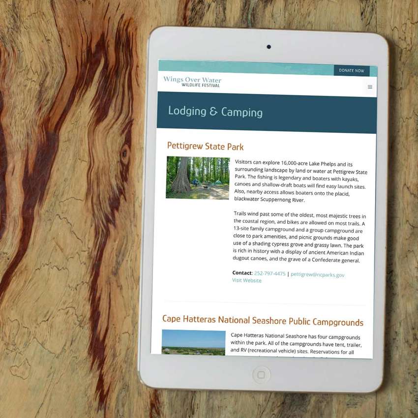 Wings Over Water is a long-running wildlife festival celebrating the rich natural ecosystems of Eastern North Carolina. The organization needed a refreshed online presence that could serve both as an informational hub and a functional tool for managing multi-day, multi-location events.